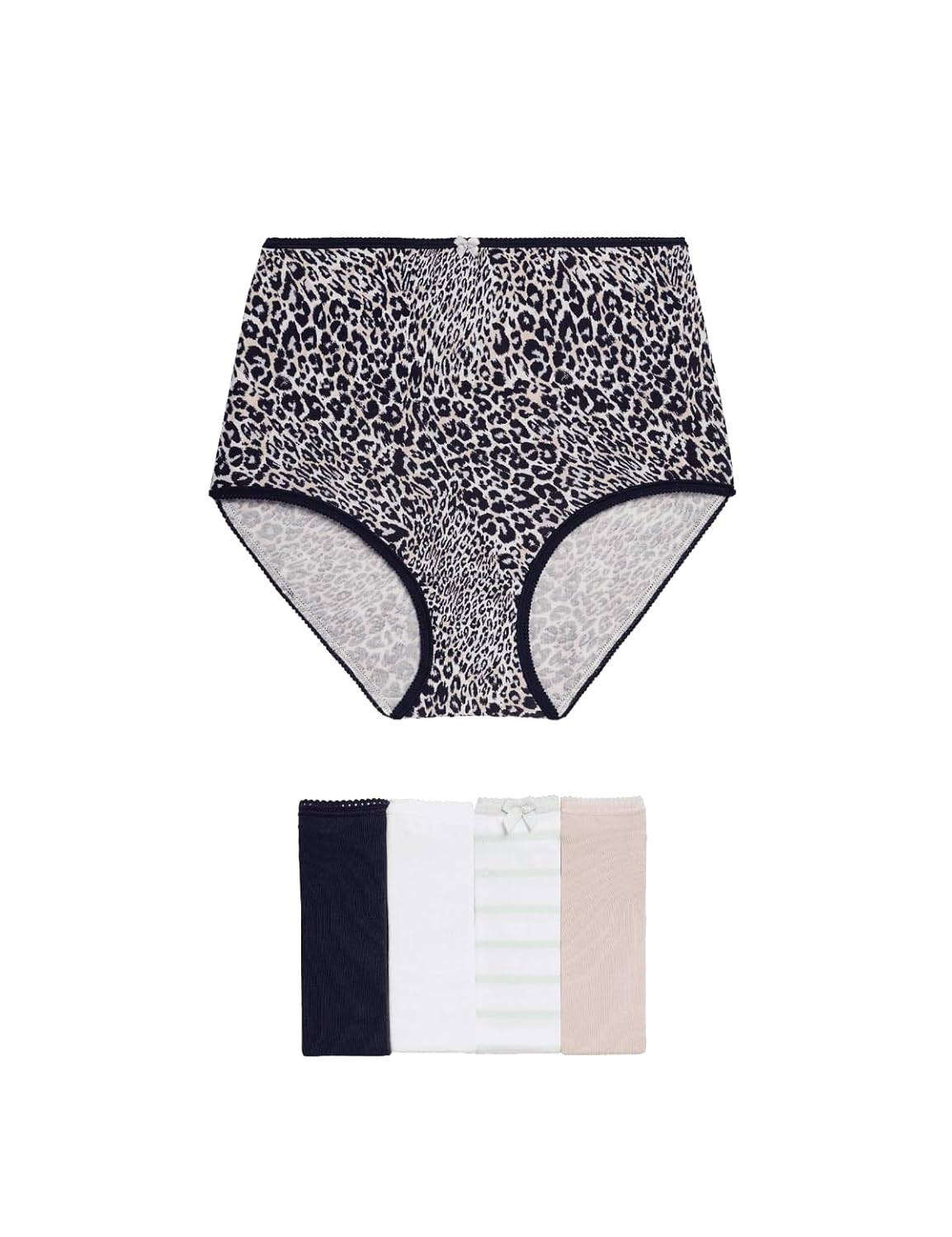 Choose from stripes, animal print or plain with this four-pack of knickers. Full-brief style, with soft picot trims. The Cotton Lycra™ fabric gives the knickers a stretchy, breathable feel. M&S Collection: versatile styles in modern shapes with unique and playful details.