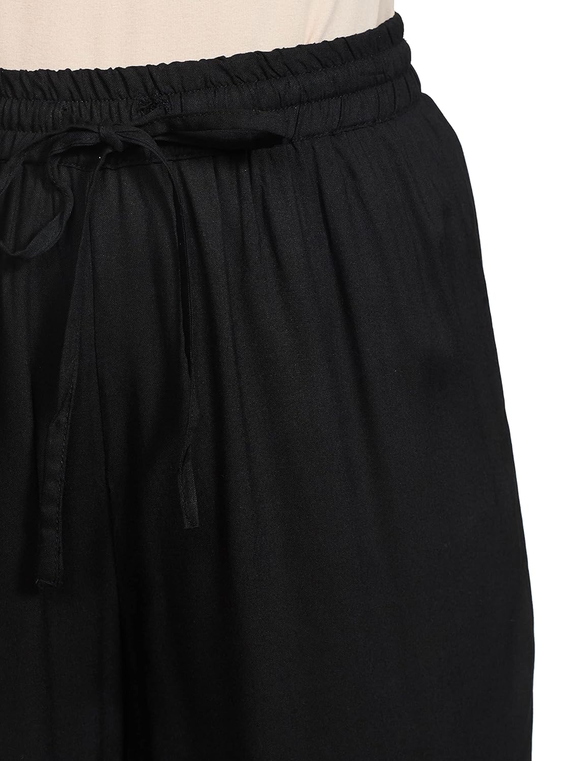 A chic update for a casual wardrobe, this pair of palazzo is designed with a solid surface, drawstring, insert pockets and an elastic waistline.