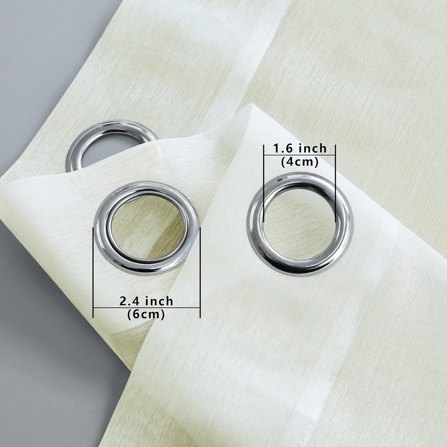 Pack: Includes pair set solid sheer curtain panels.Each panel measures 52 in wide by 84in drop.(7ft height).8 silver metal rings on top for easy sliding.