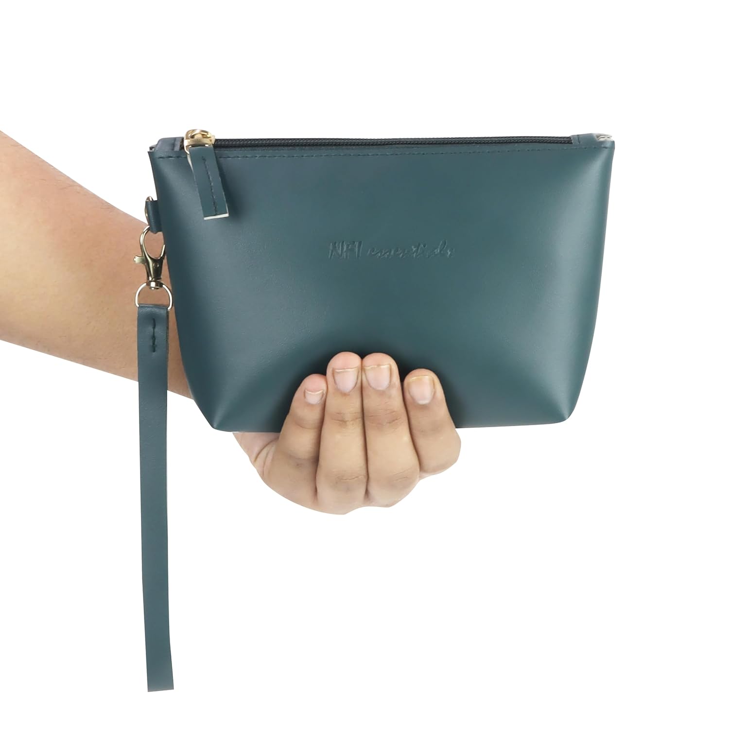 NFI essentials Pu Makeup Pouches For Stylish Women’s, Makeup Bag Accessories, Travel Cosmetic Bags, Make Up Pouch, 5Cm, Dark Green
