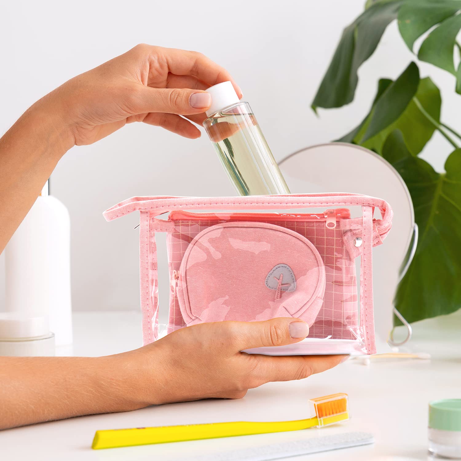 NFI essentials Set of 3 Cosmetic Pouch Makeup Pouch Vanity Pouch Travel Organizer Toiletry Pouch for Women Zippered Pouch Set, Large, Medium, Small Makeup Bag