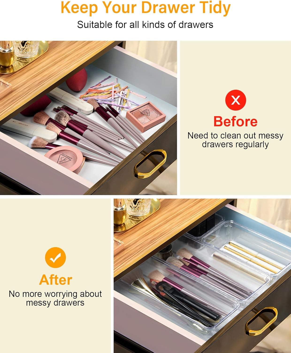 Easy to Clean:Our dressing table organiser 6 pcs desk drawer storage is easy to clean by wiping with mild soapy water and a sponge. Convenient to use in your daily life, and make everything look neater and more organized
