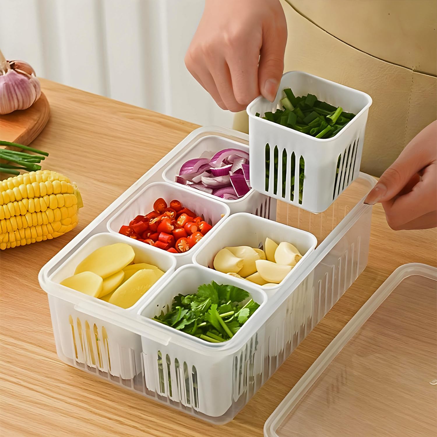 Freshness Preservation: The 6-Grid Air-Tight Stackable Fridge Storage Boxes are designed to preserve the freshness of your food, thanks to their air-tight seal that prevents moisture and air from entering, keeping your food fresh for longer periods.