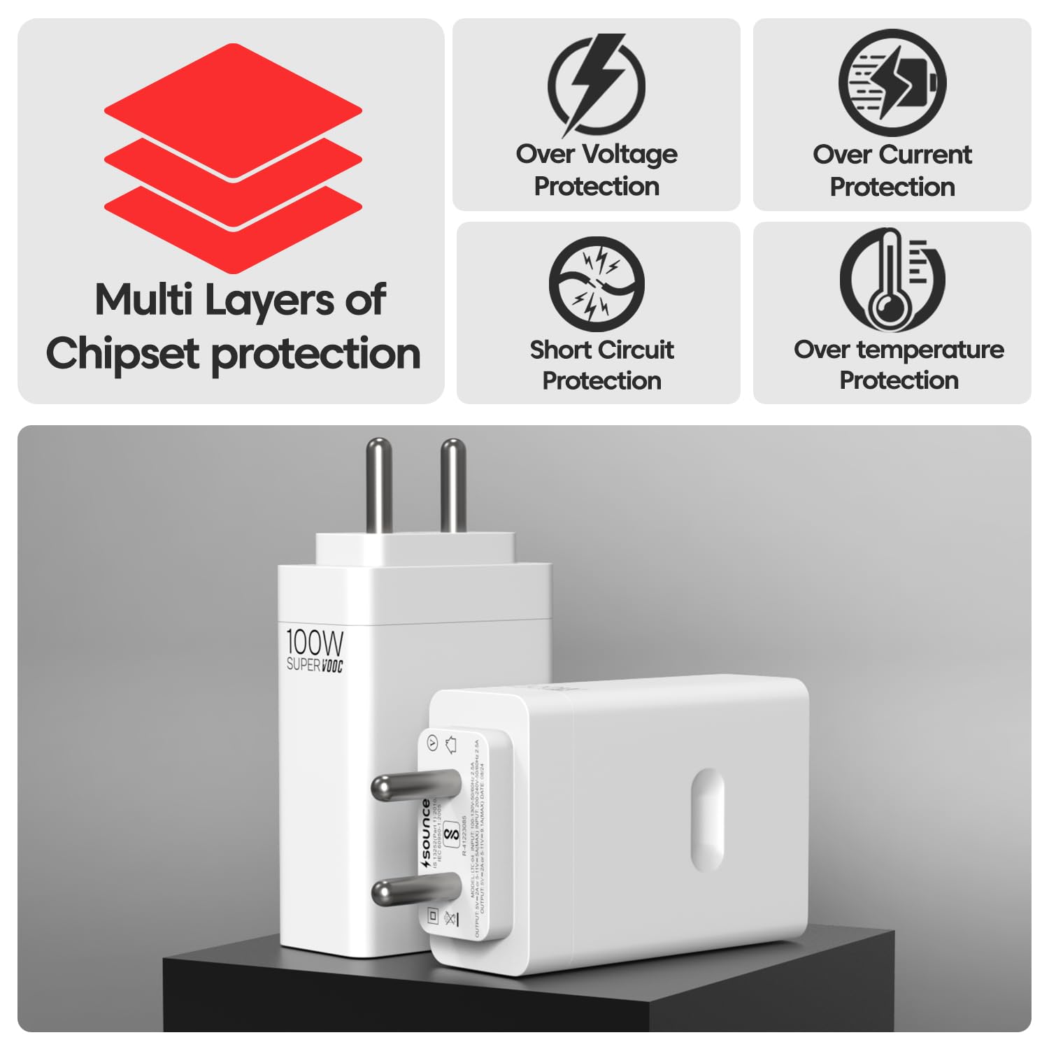 Zoraiz Electronics Charger provides SUPERVOOC Flash 100w Ultra Fast MAX charging power. It takes 15 minutes to charge the 5000mAh battery of One Plus from 1% to 60%1. It is compatible with all the models that support SUPERVOOC Flash or VOOC technology.
