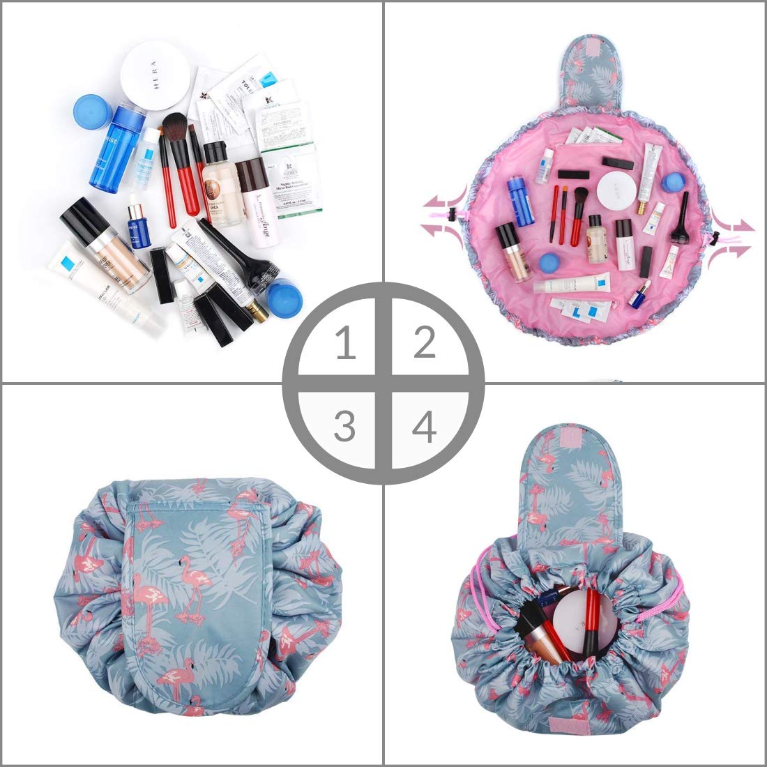 Portable and Fast with No more digging and dumping in a traditional black hole makeup bag, Just need to open the drawstring bag, all items at a glance, quickly to get all cosmetics as you need