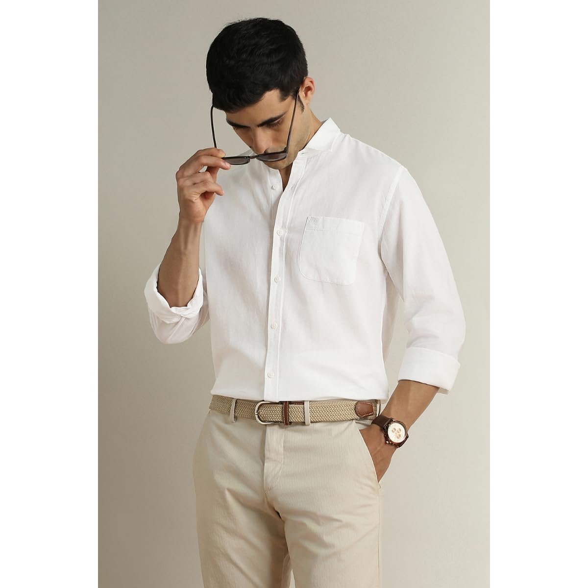 Elevate your casual wardrobe with the Peter England Casuals full sleeves shirt in a fresh white hue. Crafted from a premium cotton-linen blend, this textured shirt ensures breathability while offering a stylish fit. Perfect for laid-back outings, its versatile design pairs effortlessly with jeans or chinos. Embrace comfort and style that stands out, making it a must-have addition to your collection.