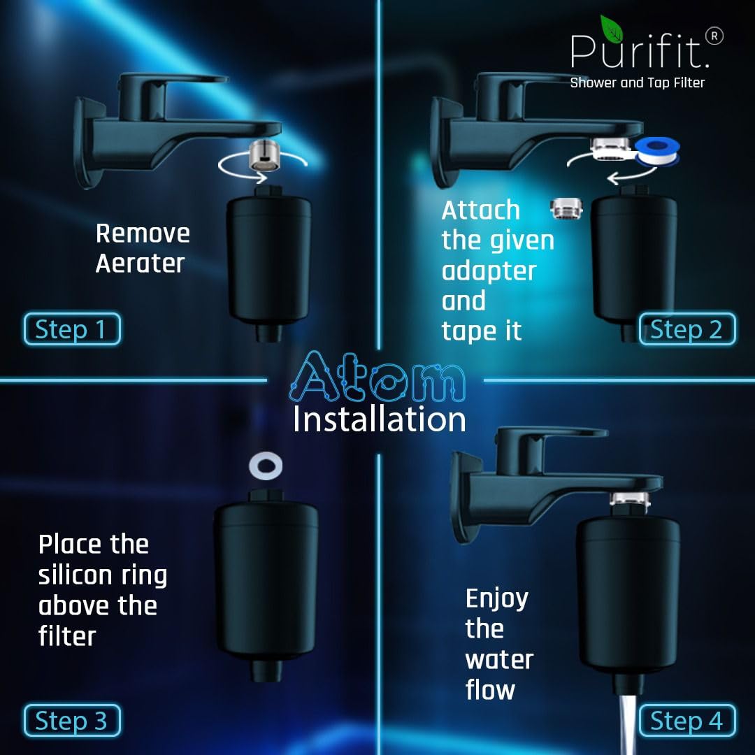The Purifit ATOM Shower Filter offers many benefits with its purifying and cleansing properties that assist in transforming harmful chlorine and hard water salts into harmless constituents, which are easy to clean off from your hair and skin.