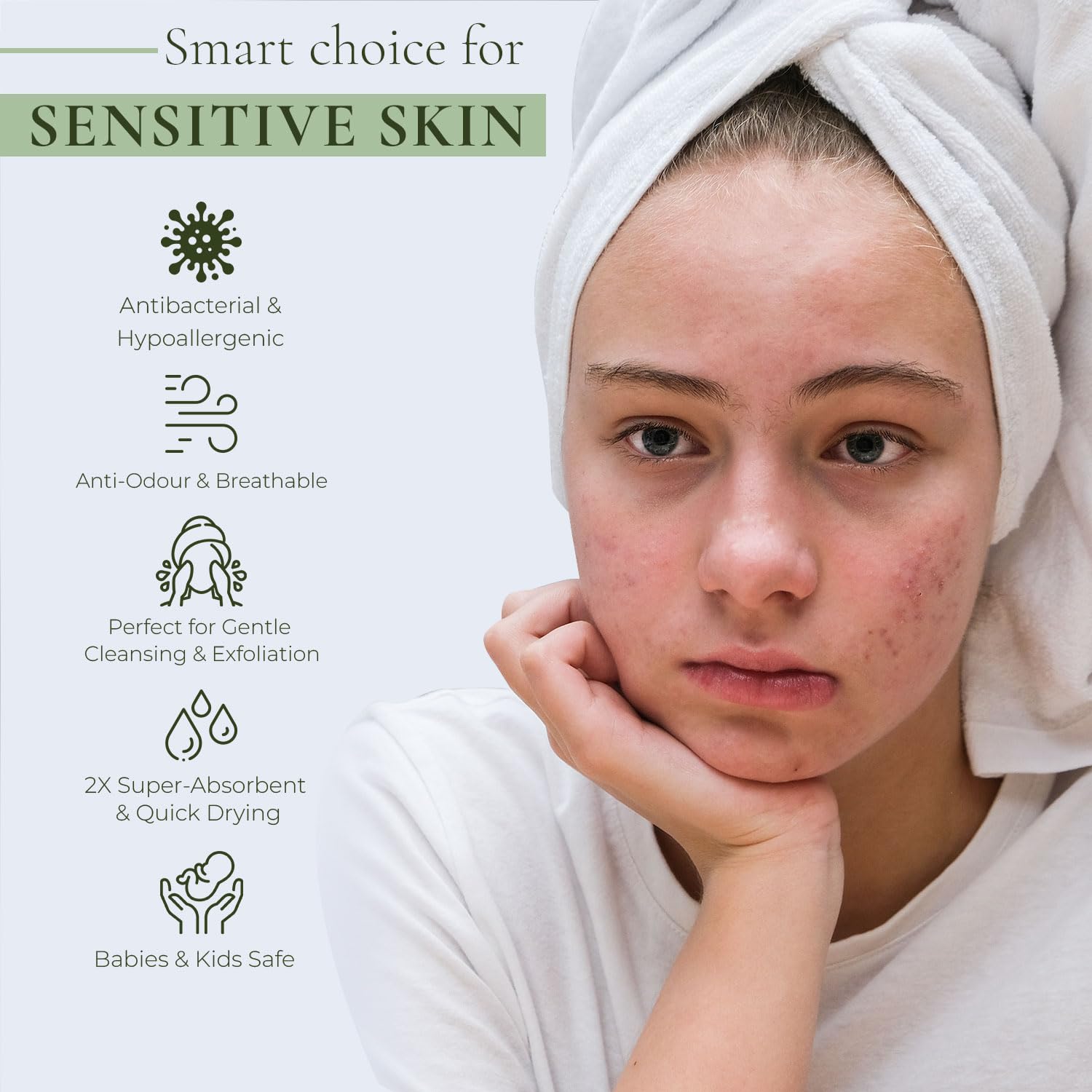 Eco-Friendly & Hypoallergenic: Made from sustainable and biodegradable bamboo, these towels are naturally antibacterial, hypoallergenic, and free from harmful chemicals, making them safe for sensitive skin and eco-conscious users.