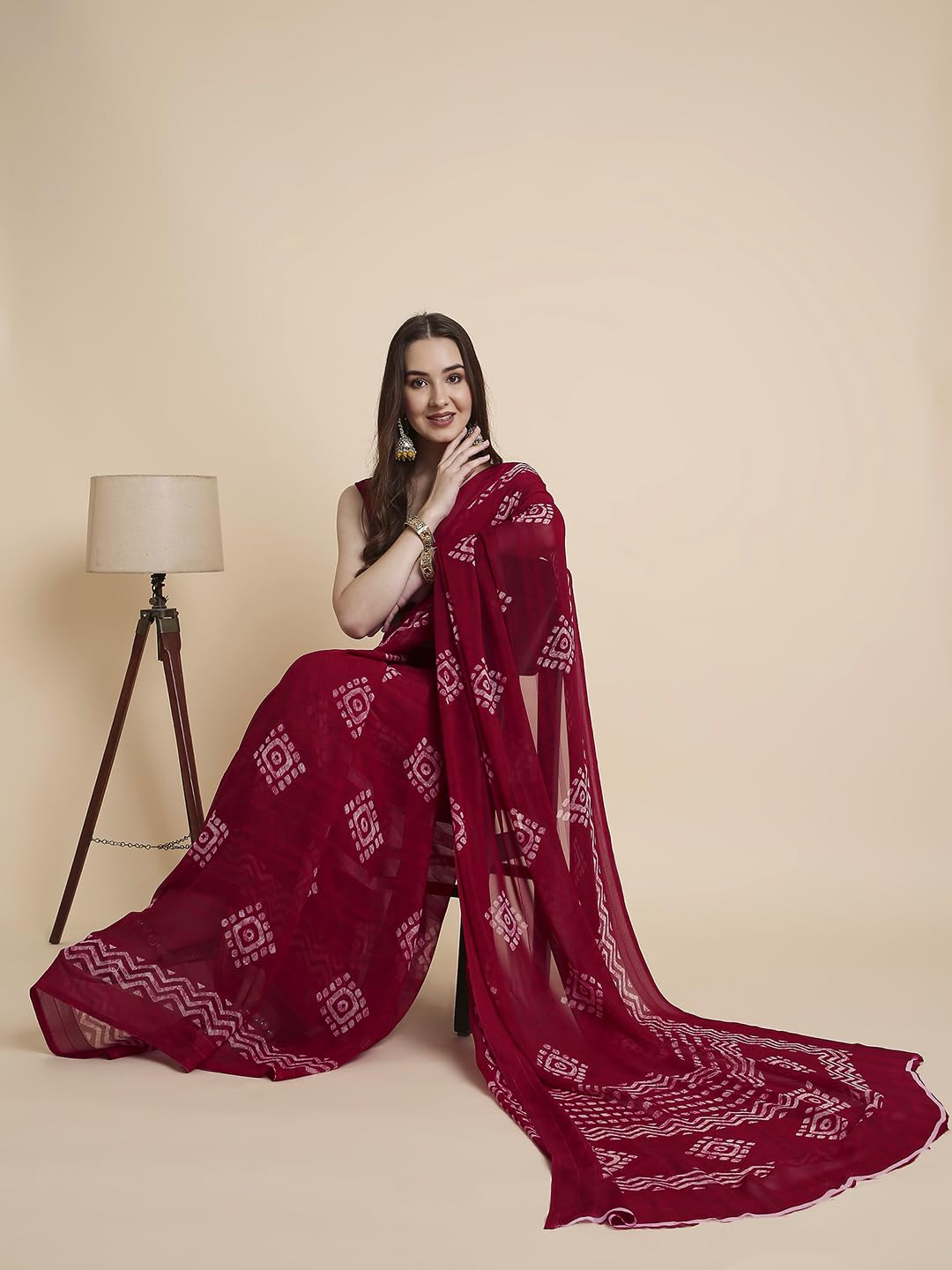 RATAN Women’s Shimmer Georgette Batik Printed Saree with Printed Blouse Piece