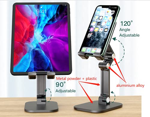 【 Solid Constructed Tablet Stand】This heavy-duty desktop tablet holder is made of plastic and alloy with strong metal base, firmly placing on a flat surface, no fear of overbalancing.