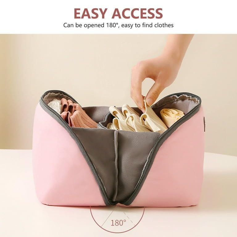Easy Access : With its 180 degree design and large opening, our travel underwear storage bag with zipper allows for effortless organization and easy access to your underwear outdoors. modate a standard set of bras and lingerie.