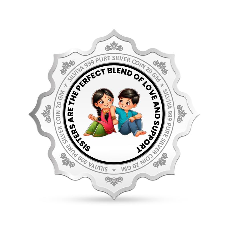 Silviya BIS Hallmarked 999 Pure Silver Rakhi Coin for Beloved Brother – Raksha Bandhan Gift – Indian Tradition Rakhi Festival – With Certificate of Authenticity