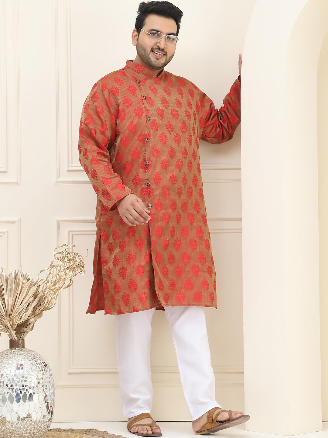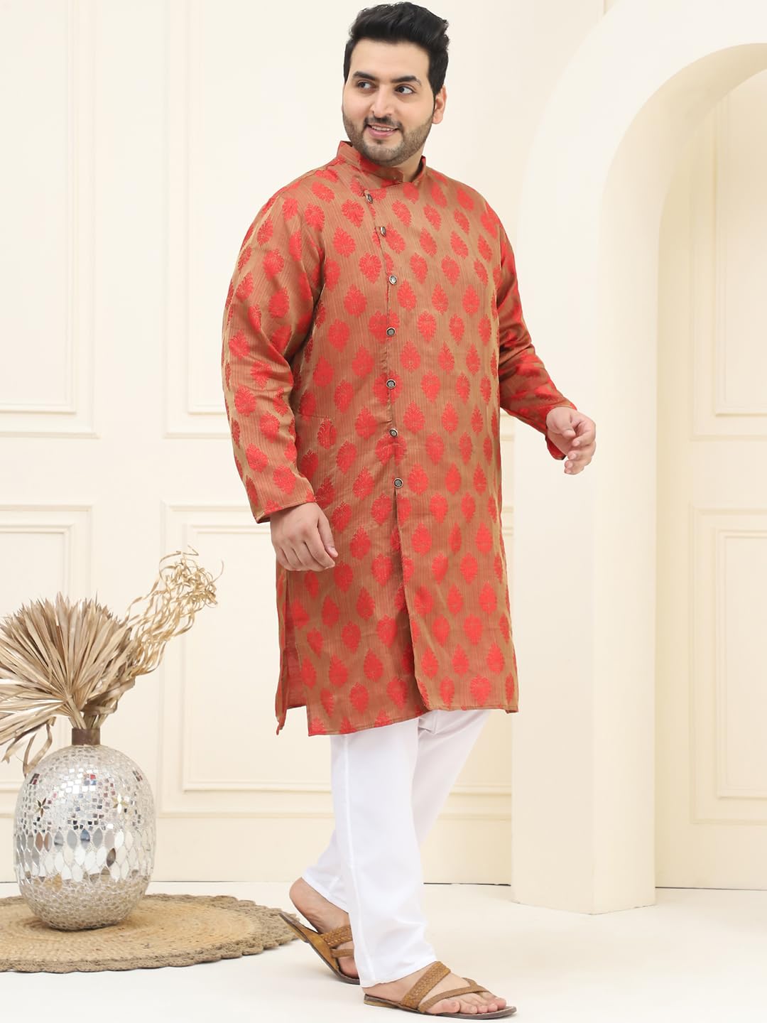 SOJANYA PLUS (Since 1958) Men’s Jacquard Silk Kurta & Off-White Pyjama Set