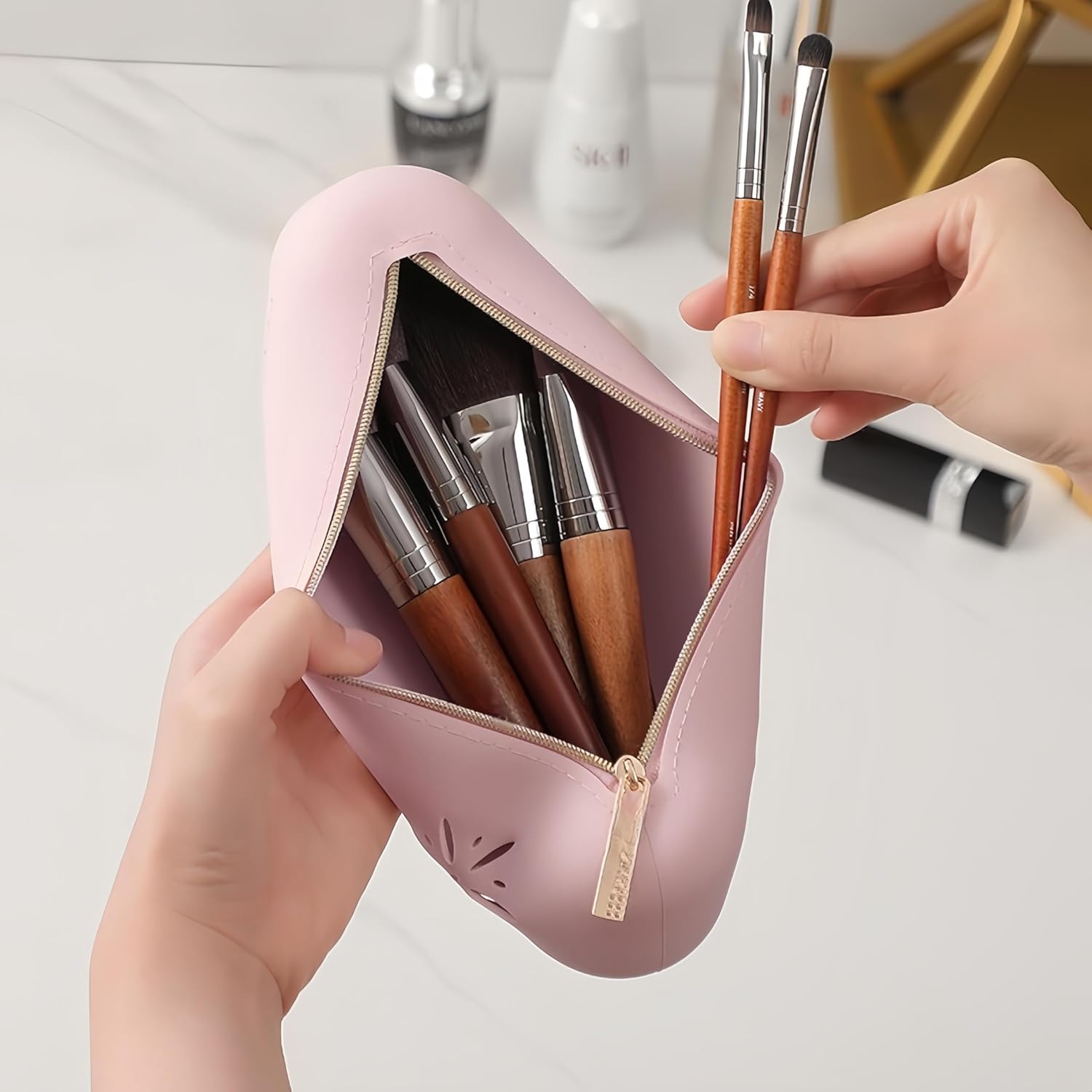 【Healthy & Soft Silicone Materials】Crafted from premium soft silicone, this makeup brush holder is lightweight, wrinkle-resistant, and provides a gentle touch on the skin. Unlike traditional silicone holders, our brush case is odor-free and not easy to attract dust. The smooth silicone bag is easy to clean with water or damp cloth and effortlessly removing makeup stains.