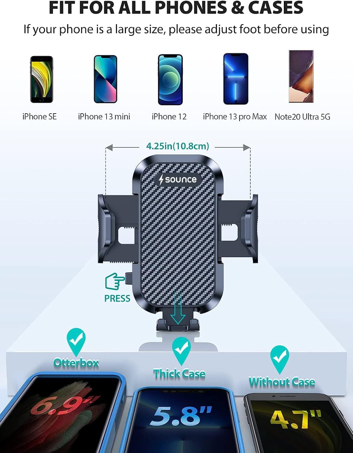 ![Sounce Car Phone Holder Mount, [Military-Grade Suction & Super Sturdy Base] Universal Phone Mount for Car Dashboard Windshield Air Vent Hands Free Car Phone Mount for All Smarphone iPhone Android](https://i1.wp.com/m.media-amazon.com/images/I/713f8IOxsKL._SL1500_.jpg?w=1414&resize=1414,1500&ssl=1)