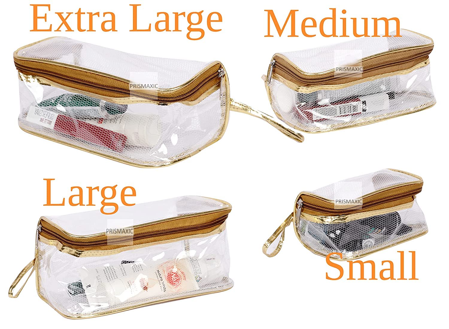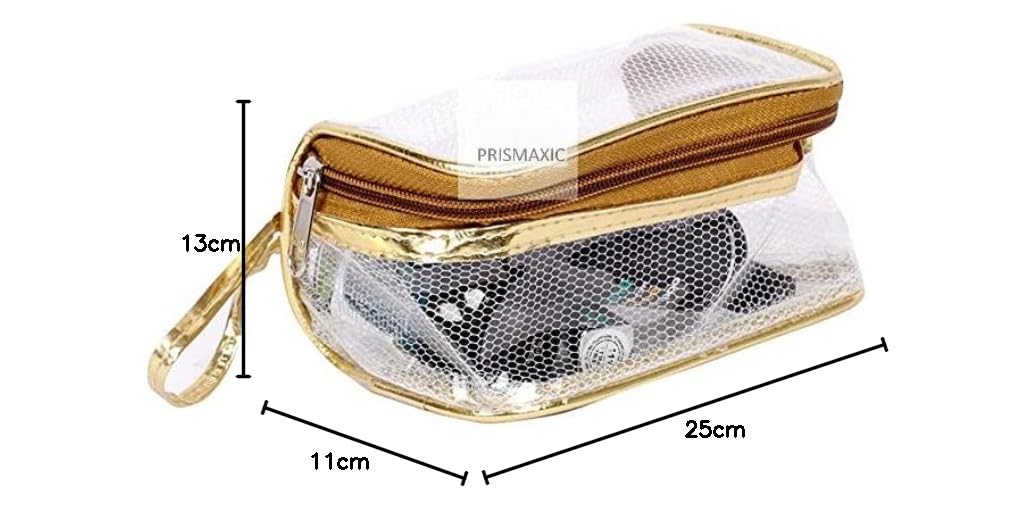 These pouches have a great and eye catching transparent look. The makeup pouch folds very thinly and saves lot of space when it is empty. Its high quality stitch keeps all stuff safe and dust free.