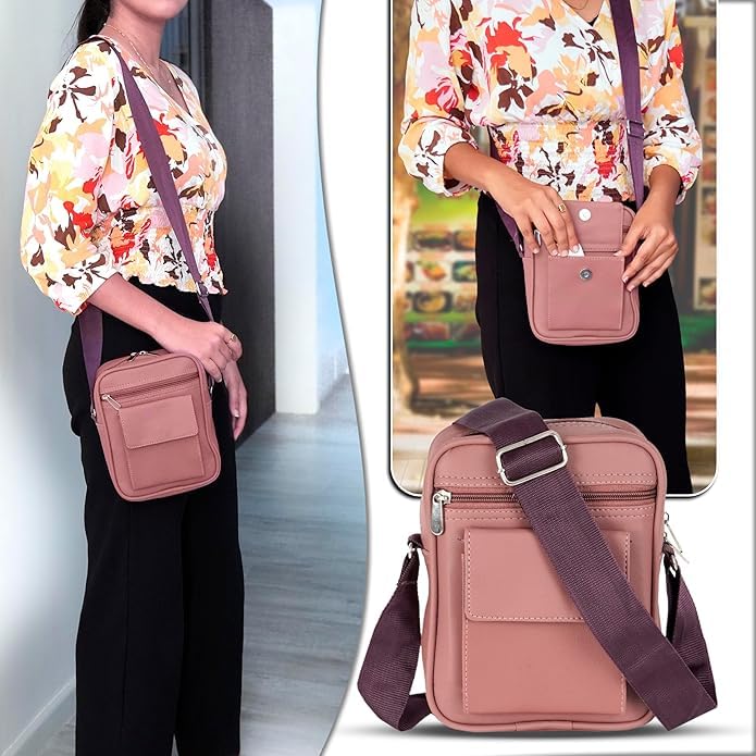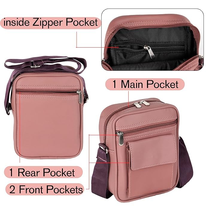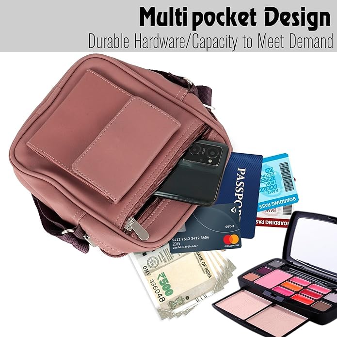 Multipurpose Soft PU Leather Classic looking and functional use. Crossbody bag : A total of 4 pockets (One Back side Pocket, 1 front side Pocket ,1 Inner Side Pocket, 1 Main Pocket). which you can put your cell phone, wallet, keys, perfume, coins and some small cosmetics