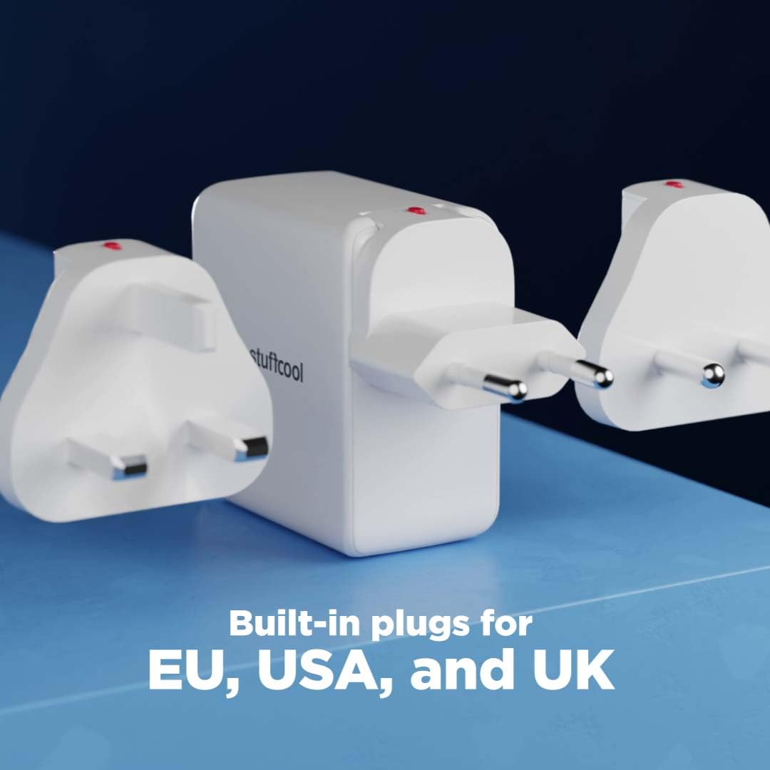 [Your Ultimate Travel Companion!]:Experience unparalleled convenience with the Nomad GaN Charger Multi port Fast Charger, with exchangeable plugs for EU, USA, and UK outlets, this charger is your go-to solution in over 150 countries, making it perfect for globetrotters and frequent travellers.