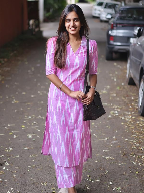 Sun Fashion And Lifestyle Women’s Cotton Stitched Ikkat Printed Kurta Set for Women