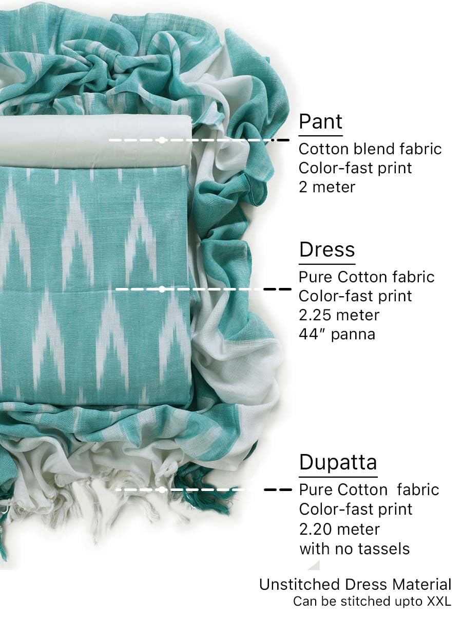 Sun Fashion And Lifestyle Women’s Ikkat Cotton Unstitched Salwar Suit Dress Material, 2 Mtr Cotton Salwar, Stylish Ikkat Dupatta By 24 Carat Suit (Ikkat 1; Free Size)