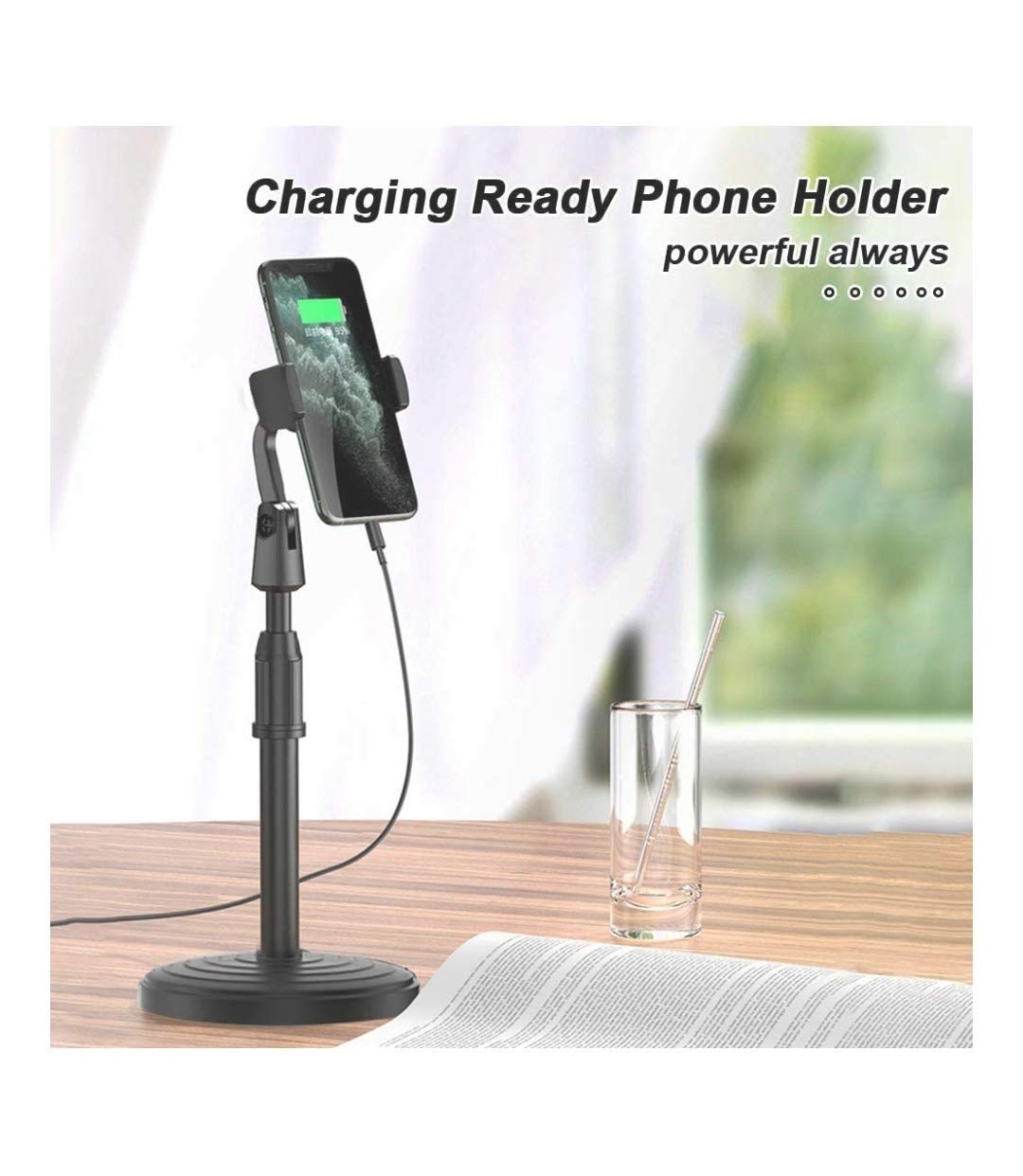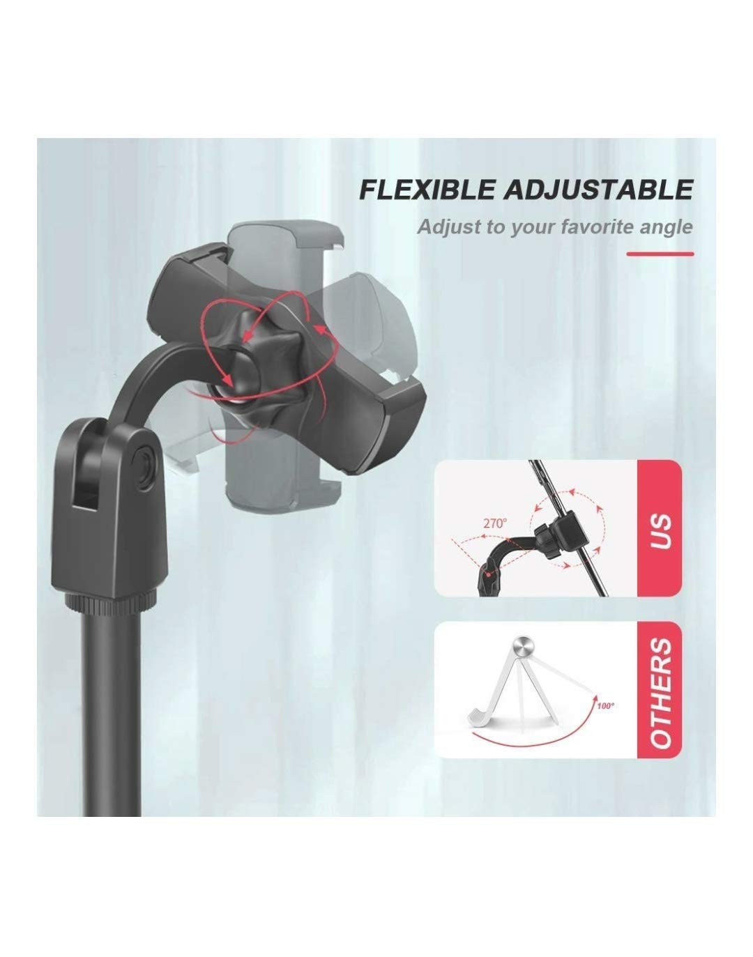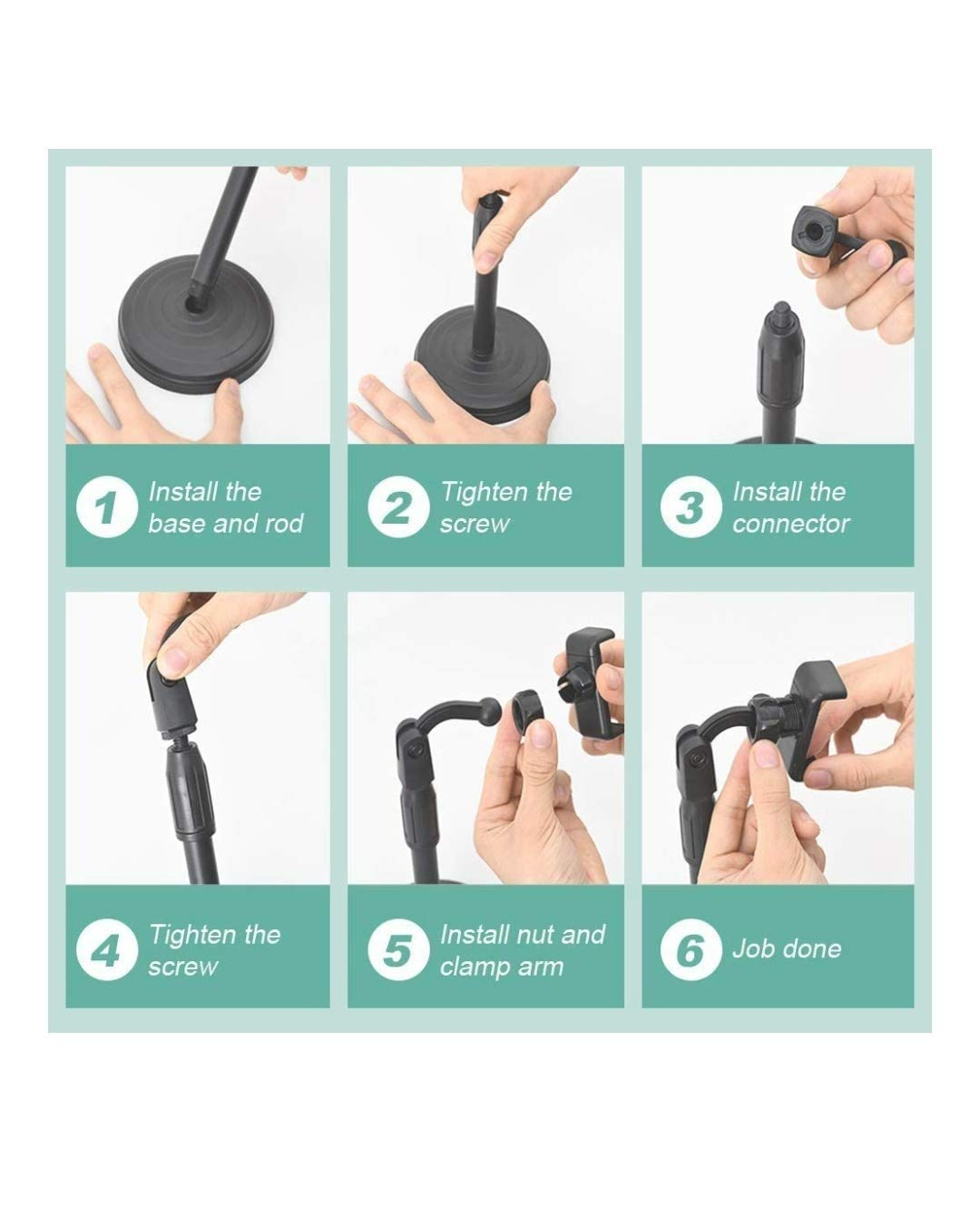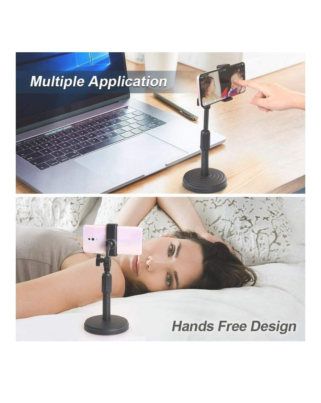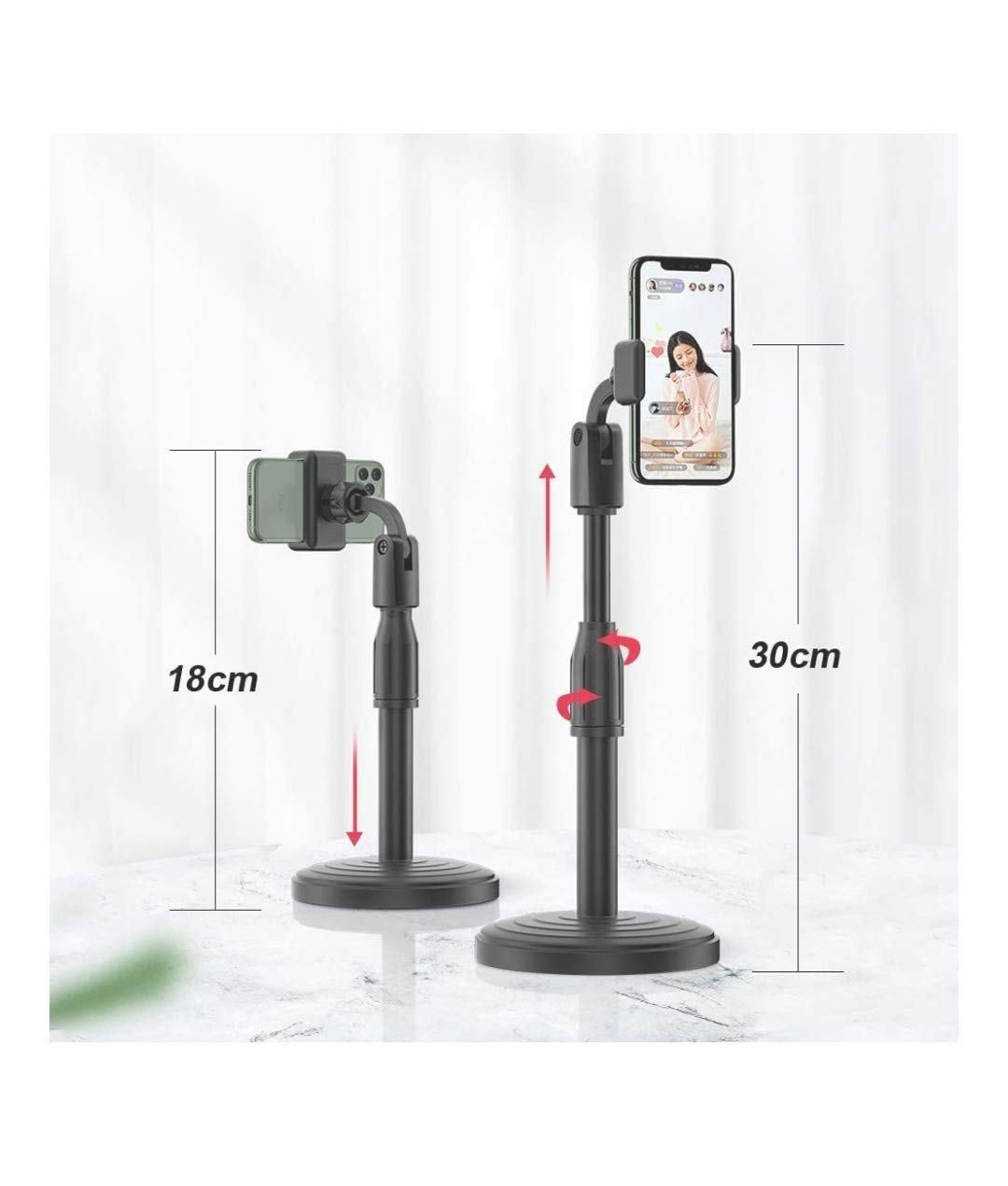 Desk stand for smartphone live stream video youtube,it can Adjustable Angle and Height. portable for travel. Features: – Universal rotation: all angles horizontal and vertical – Stretchable: Max extension height 14.5 inch – Stable stand: Not easy to fall down, unless you give too much push Specifications: Cell phone holder type: Stretchable Universal rotation mobile phone stand with base Material: ABS + Plastic Weight: 400 gram / 450 gram Support phones: almost every brand smart phone is ok to use Self-assembling: It`s super easy to assemble it, you just need to take few steps on it. Package including: 1 X Mobile Phone Stand.