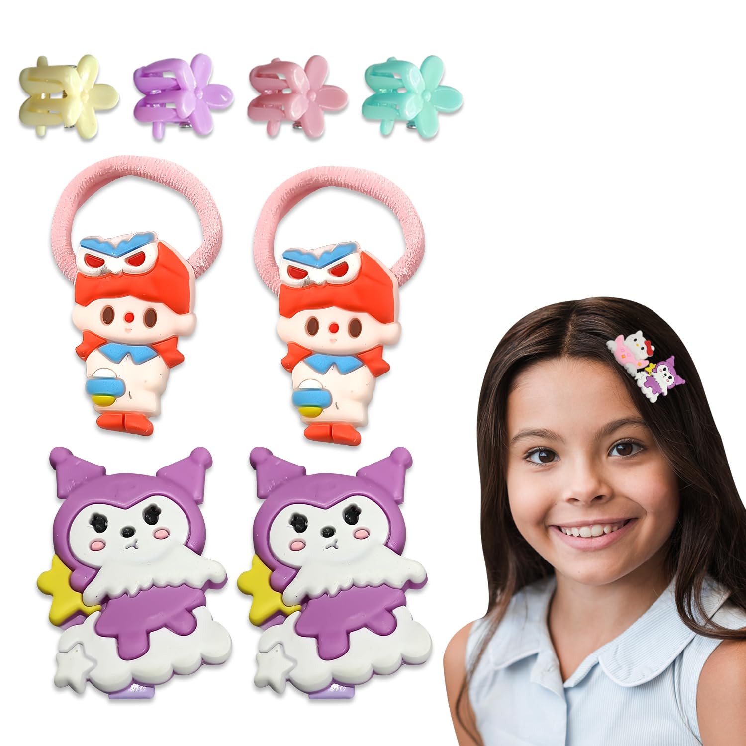 ❤ VARIETY OF DESIGNS: Our Set Includes 12 Flower-Shaped Small Clutches, 6 Heart-Shaped Clips, and 6 Cute Design Rubber Bands, Offering Versatile Styling Options for Different Hair Types and Lengths