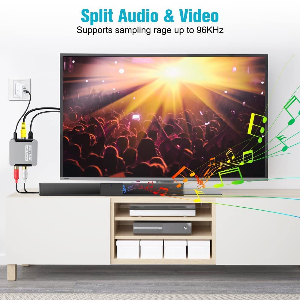 Digital to Analog Audio Converter for TV/DVD/PS3/PS4/Xbox/Bluray Player/AV Amp/Stereo System/Speaker/Wired Headphone/Bluetooth Transmitter.