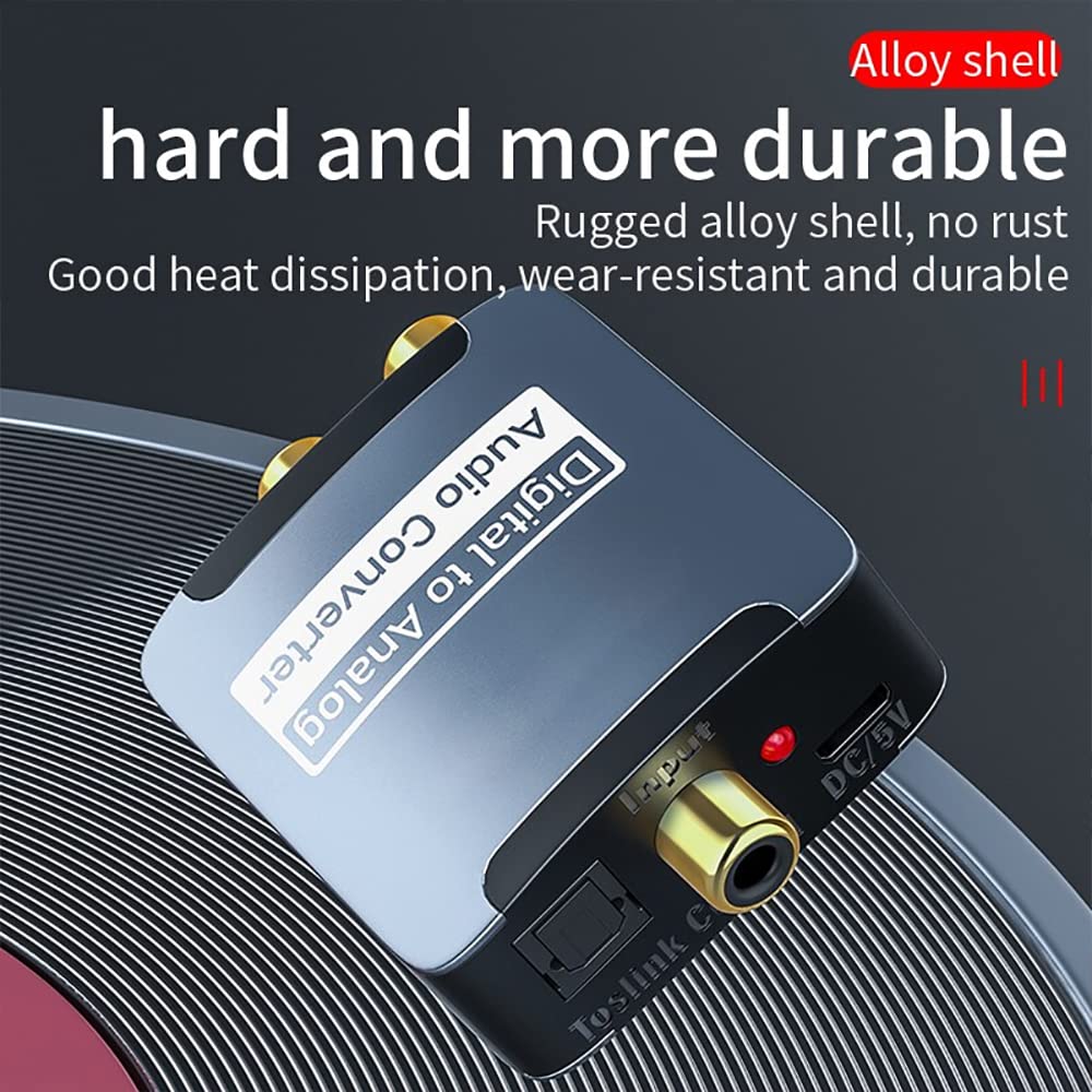 ★【Plug & Play】Comes with a 1.5m(4.9ft) digital optical audio cable and 1m(3.3ft) USB power cable, easy to connect and operate. Connect it to your device’s output jack, it will convert digital audio signal to analog L/R RCA and 3.5mm audio to your home cinema/wired speaker/headphone.