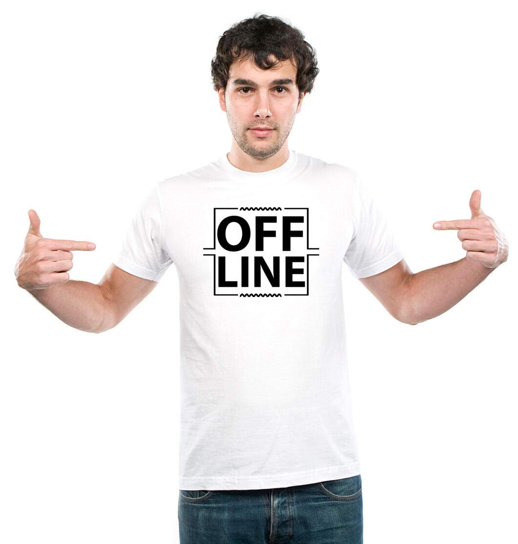 UDNAG Unisex Round Neck Graphic ‘| Off Line’ Polyester T-Shirt White [Size 2YrsOld/22in to 7XL/56in]