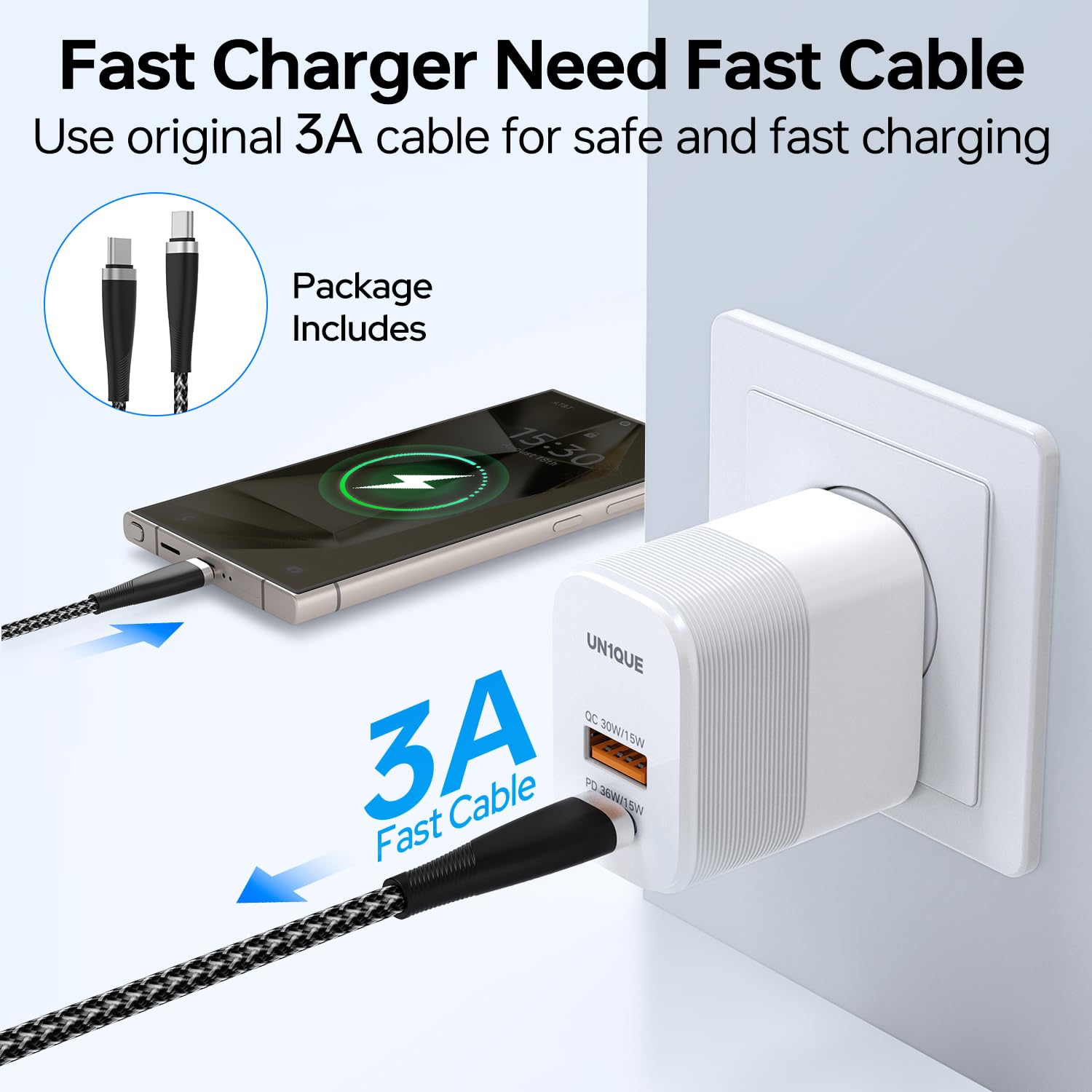【Fast Charger Need Fast Cable】Supports multiple fast charging protocols such as QC(Quick Charge) 3.0, PD (Power Delivery) 4+ 3.0. Support Samsung Super Fast Charging 25W. Note: When using our original data cable, you can maintain the highest charging power throughout the process.