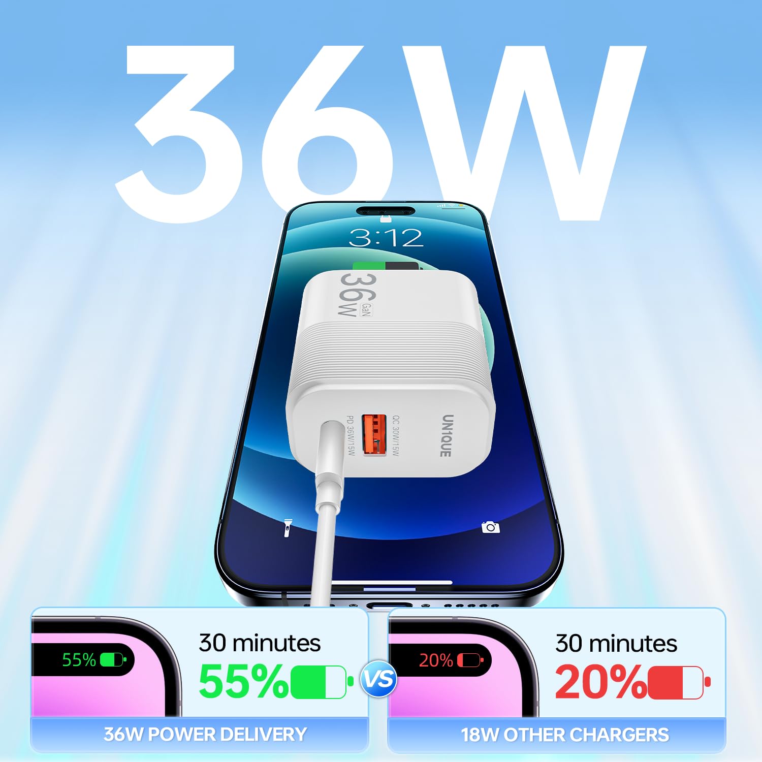 【Let Fast Charging Transform Your Life】Our 36W fast charging adapter ensures you’re prepared for emergencies by boosting your iphone battery to 50% in just half an hour, allowing you to stay calm and collected when you need to head out. No more needing to charge your iphone for over two hours before leaving the house.