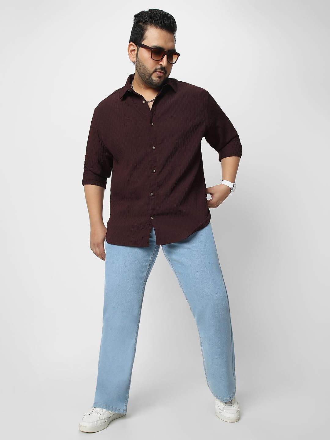 Urbano Plus Men’s Cotton Full Sleeve Regular Fit Textured Shirt with Spread Collar