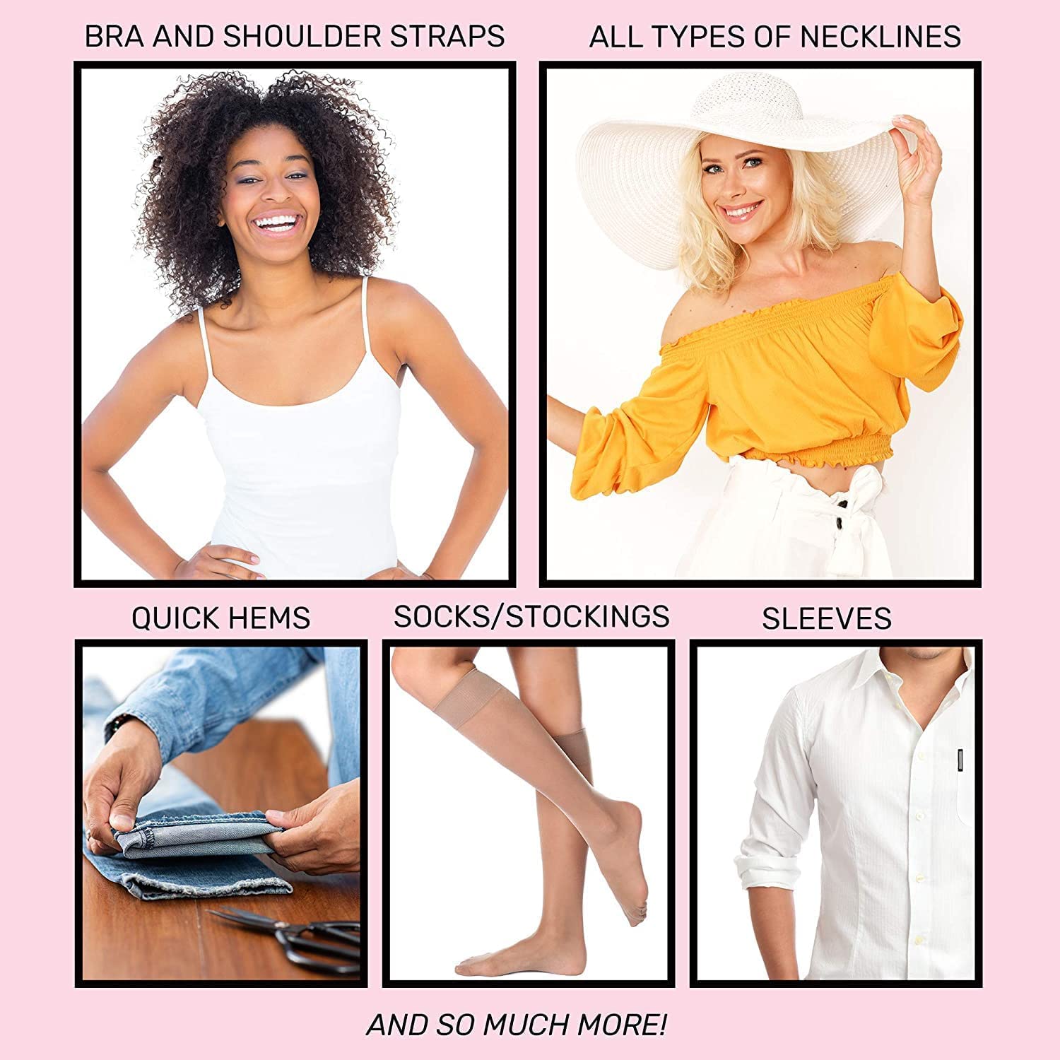 👚FABRIC FRIENDLY: Say goodbye to metal pins. Our stylish double-sided tape has a great invisible effect, with no lumpy marks or lines caused by metal pins. No residue will be left on your fabric when the adhesive is removed. It is safer and more convenient than metal pins.