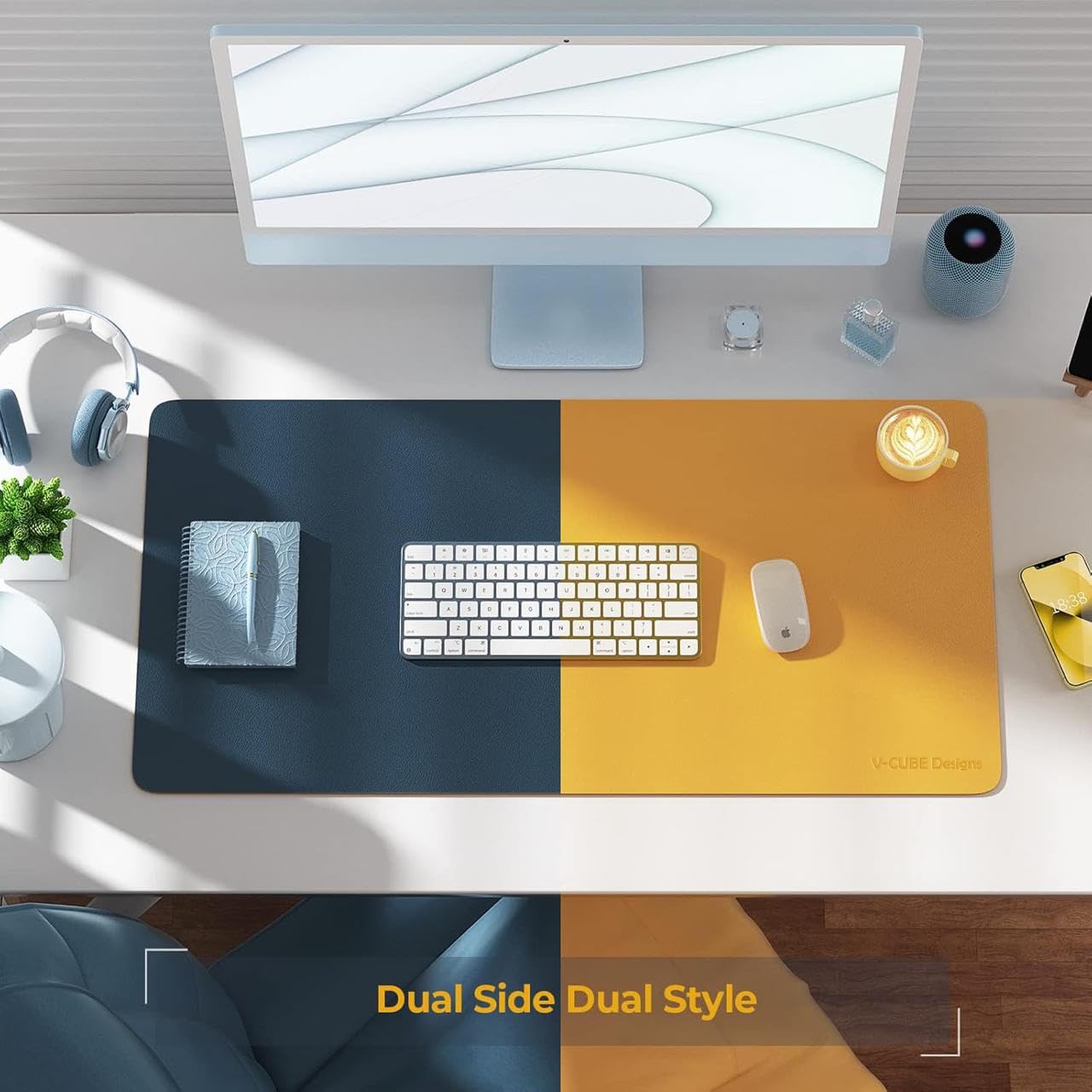Dual-sided mat with two color options, allowing you to switch between modern aesthetics for your workspace.