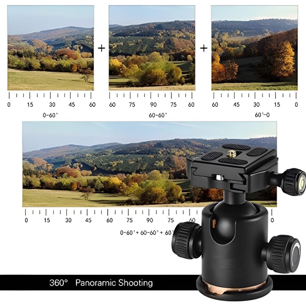 📸 360° Panoramic Rotation Ball Head: Capture ultra-smooth panoramic shots with full 360° rotation—ideal for landscape, real estate, travel, and time-lapse photography.